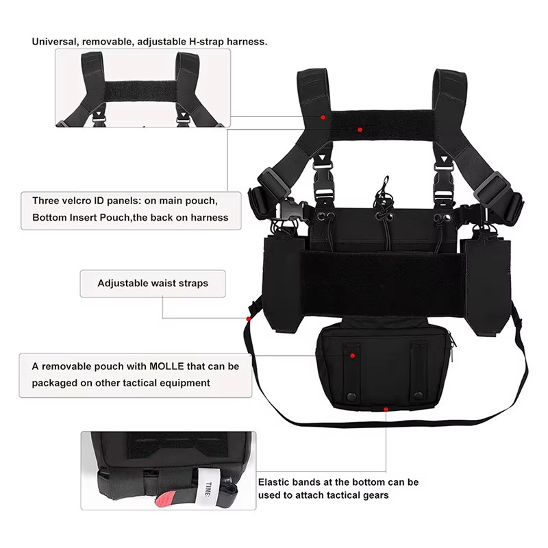 • Adjustable Detachable Tactical Modular Vest with Mag Pouch Tactical Chest Rig Tactical Molle Micro Chest Rigs Tactical Equipment Gear Vest Outdoor Adjustable Chest Rig with Pouches Heavy Duty Tactical Rig Hunting Vest