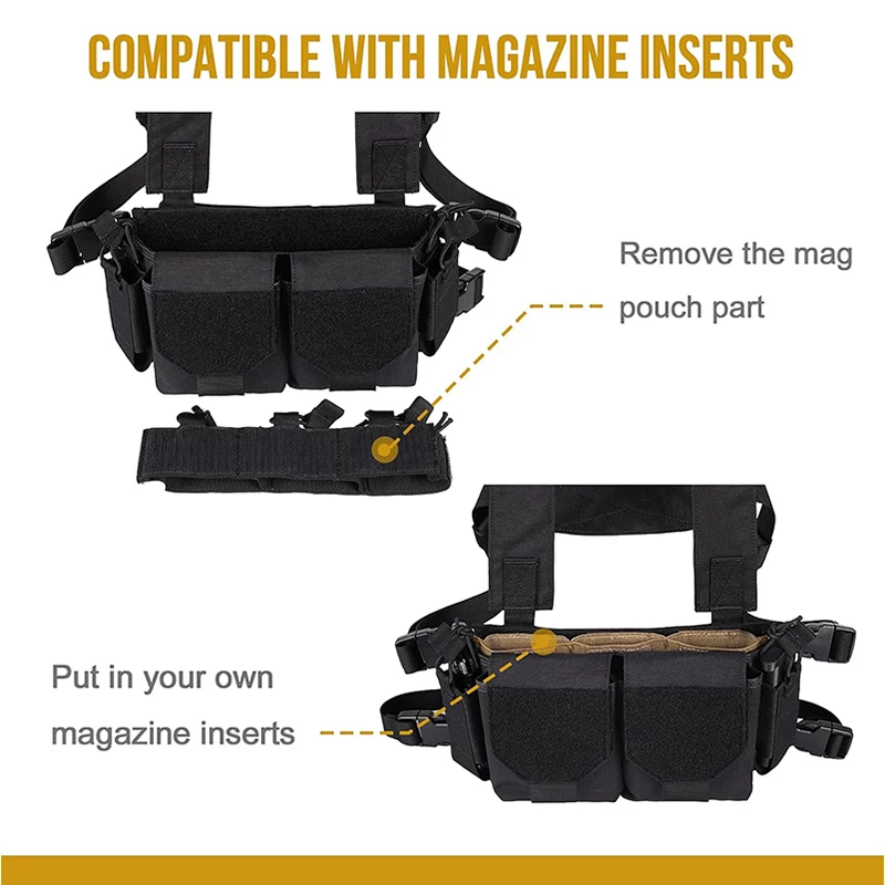 • Custom Camouflage Equipment Tactical Vest Chest Rig Adjustable Detachable Training Molle Chest Rigs Tactical Chest Mini Rig Multifunctional Adjustable Tactical Vest with Mag Pouches Outdoor Tactical Chest Vest