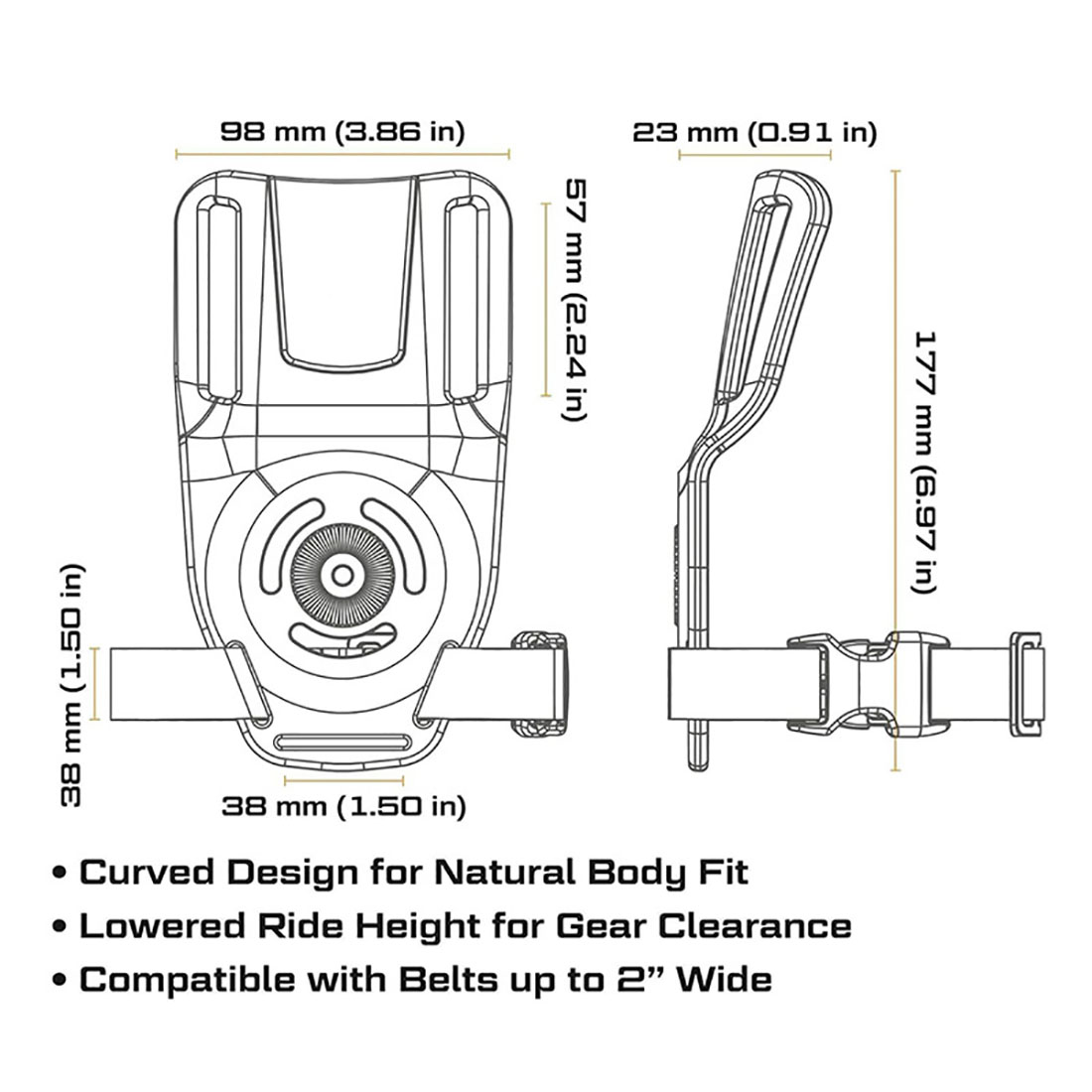 • Kydex holster elastic webbing and low-profile carry design enhance it practicality adaptability for various tactical needs It can resist chemicals and moisture while also being comfortable and durable