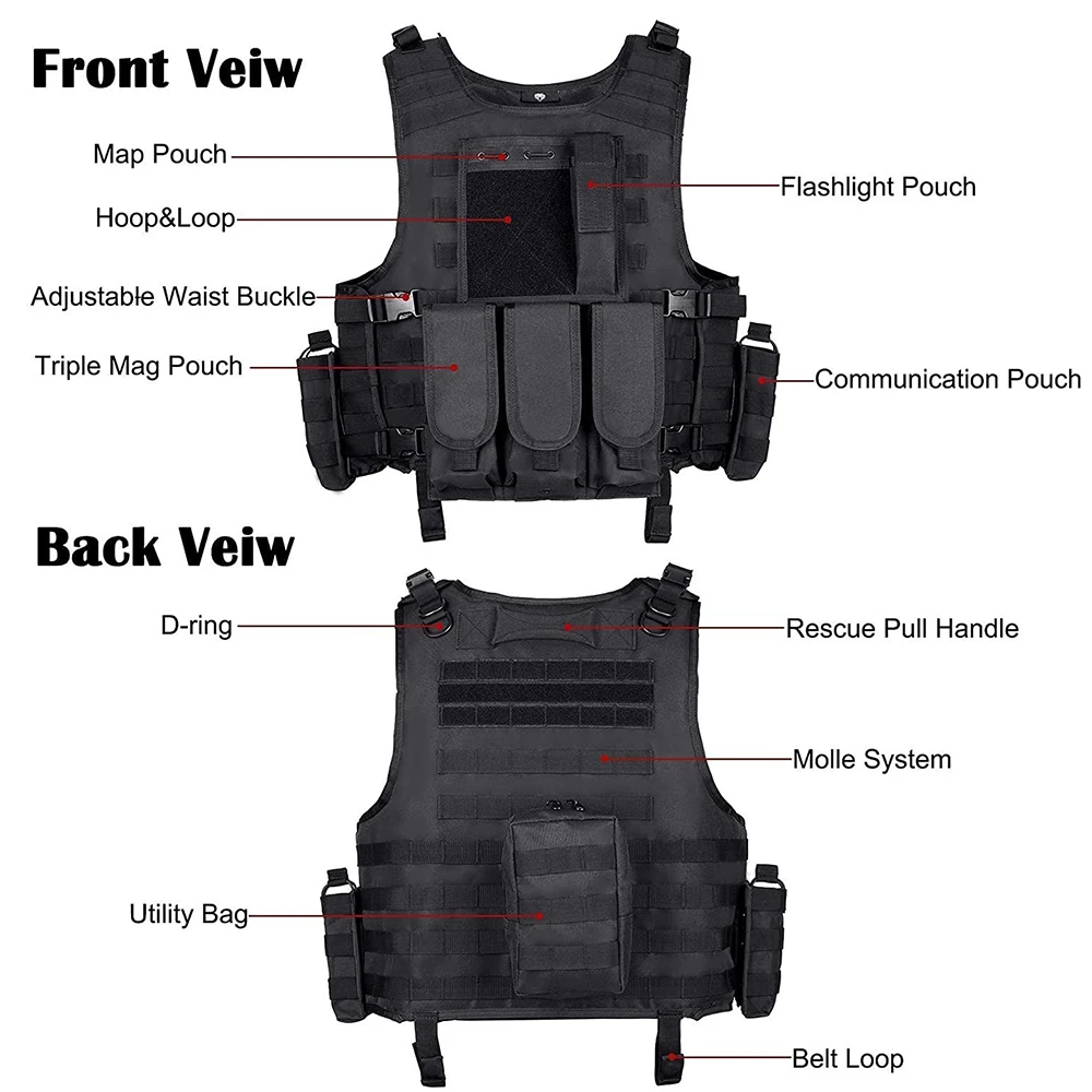 • New Style Training Vest High Quality Tactical Vest Outdoors Breathable Adjustable Tactical Vest for HuntingHot selling multifunctional Wear-resistant outdoors Breathable Paintball Vest Training