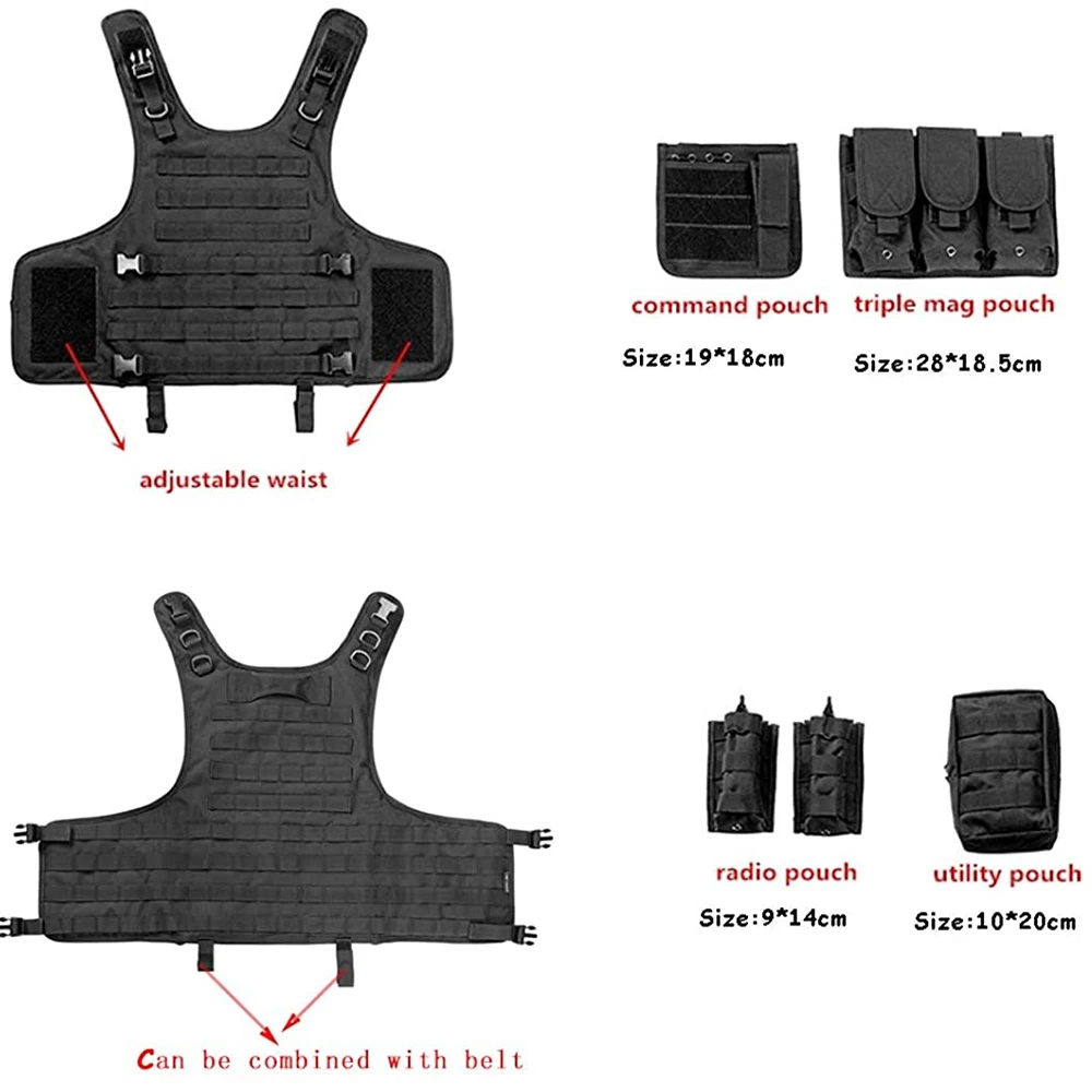 • Outdoor Assault Training Tactical Vest Men's Breathable Hunting Tactical Vest High Quality Adjustable Tactical Vest outdoors Breathable Vest Adjustable Paintball Assault Training Vest Detachable for Kids Slim Person