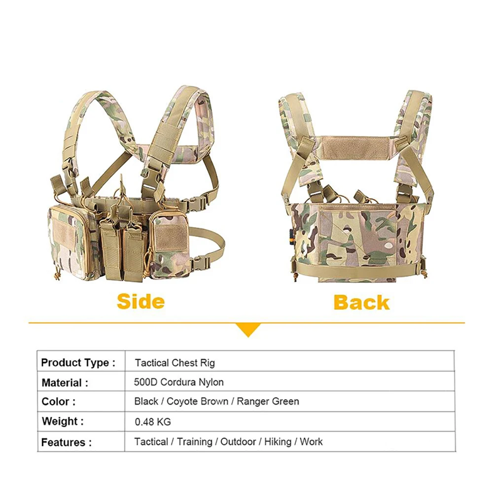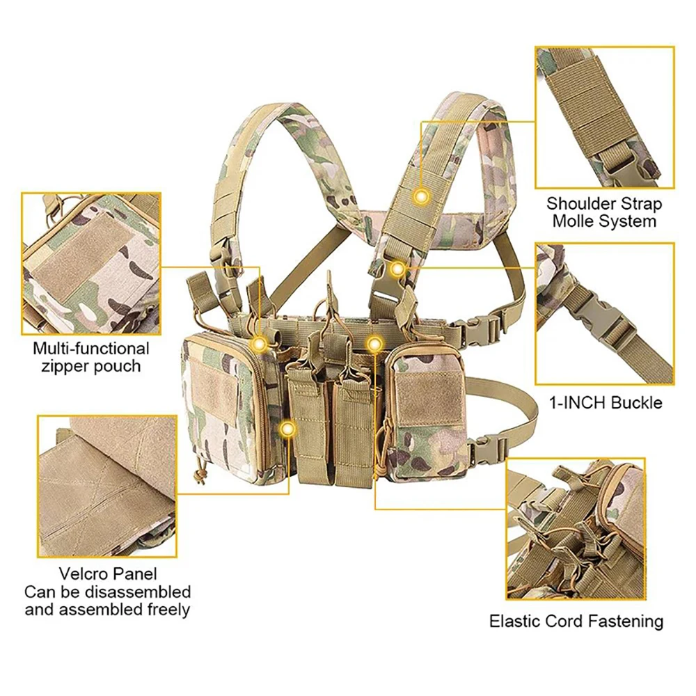 • Wholesale Men Nylon Hunting Chest Rig Tactical Pack Chest Rig with Magazine Pouch Micro Tactical Chest Rig Wholesale Outdoor Tactical Harness Chest Rig High Quality Training Vest Chest Rig Utility Tactical Rig Pouch for Chest