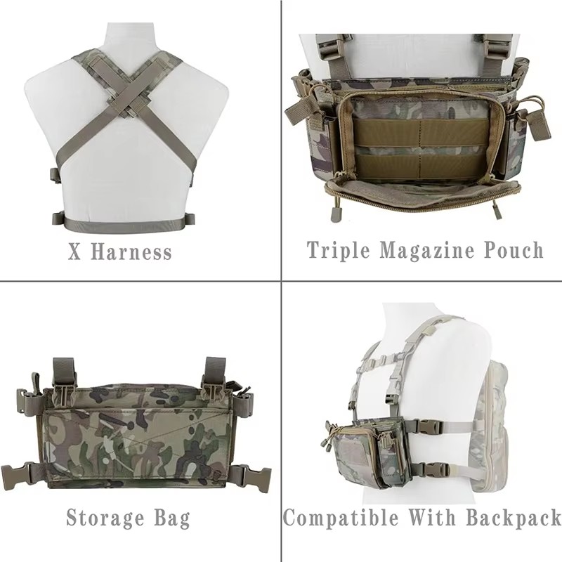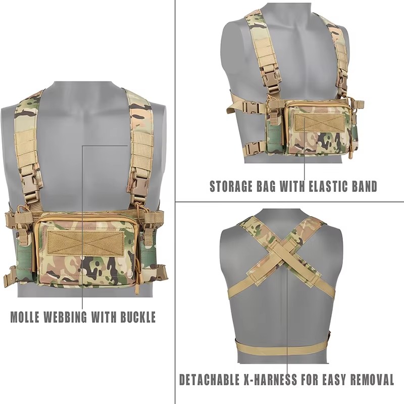 • Customized Camouflage Tactical Vest Heavy Duty Tactical Chest Rig Camouflage Tactical Vest Chest Rig Factory Directly Supply Tactical Molle Harness Heavy Duty Chest Rig Tactical Harness Vest Training Mini Rig
