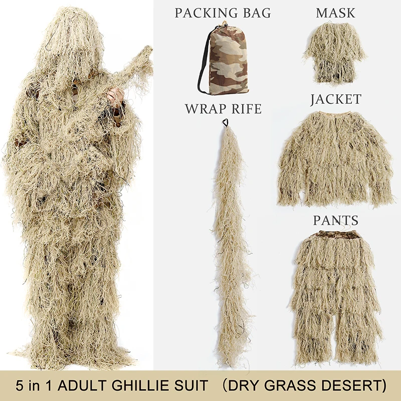• Factory Wholesale Price Camouflage Hunting Suit Breathable Ghillie Suit Hunting Clothing for Adult Hunting Camouflage Clothing Windproof Breathable Jungle Tactical Camouflage Clothing  Adult Camouflage Ghillie Suit