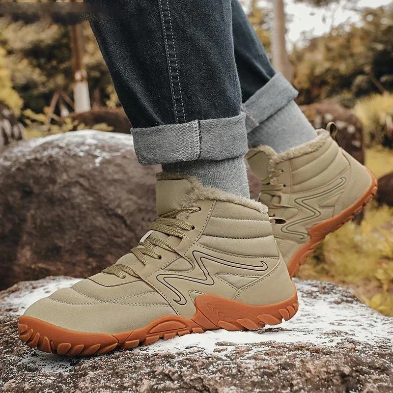 • Fashionable Men Women Tactical Winter Thermal Athletic wear-resistant Minimalist Sneakers Snow multifunctional Oxford Boots Fashionable Warm Snow Boots Men's Plush Lace-Up Winter Boot Comfort Platform Outdoor Wear-resistant Tactical Oxford Boots