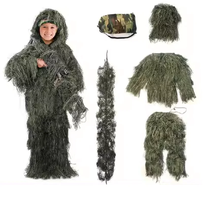 • Hot Sale Kids 3D Camouflage Hunting Forest Woodland Ghillie Suit Camouflage Hunting Apparel Children's Ghillie Suit for Outdoor Lightweight Breathable Ghillie Suit Jungle Hunting Camouflage Clothing