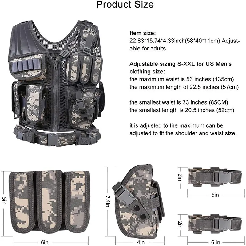 • Multifunctional Assault Vest for Outdoors High Quality Breathable Waterproof Training Vest Lightweight Field Tactical Vest  Training Vest Assault outdoors security Training vest Fully Adjustable Lightweight Sports Training vest