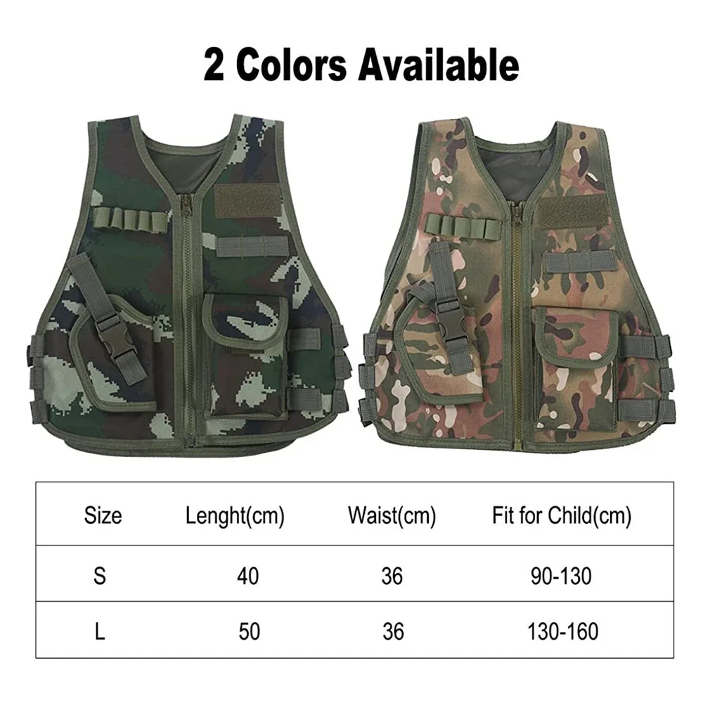 Outdoor Kids Children Tactical Waistcoat With Multi Pocket Children Assault Training Vest Camouflage Vest for Kidshigh-quality Adjustable Training Vest outdoors Breathable Paintball outdoors security Training vest
