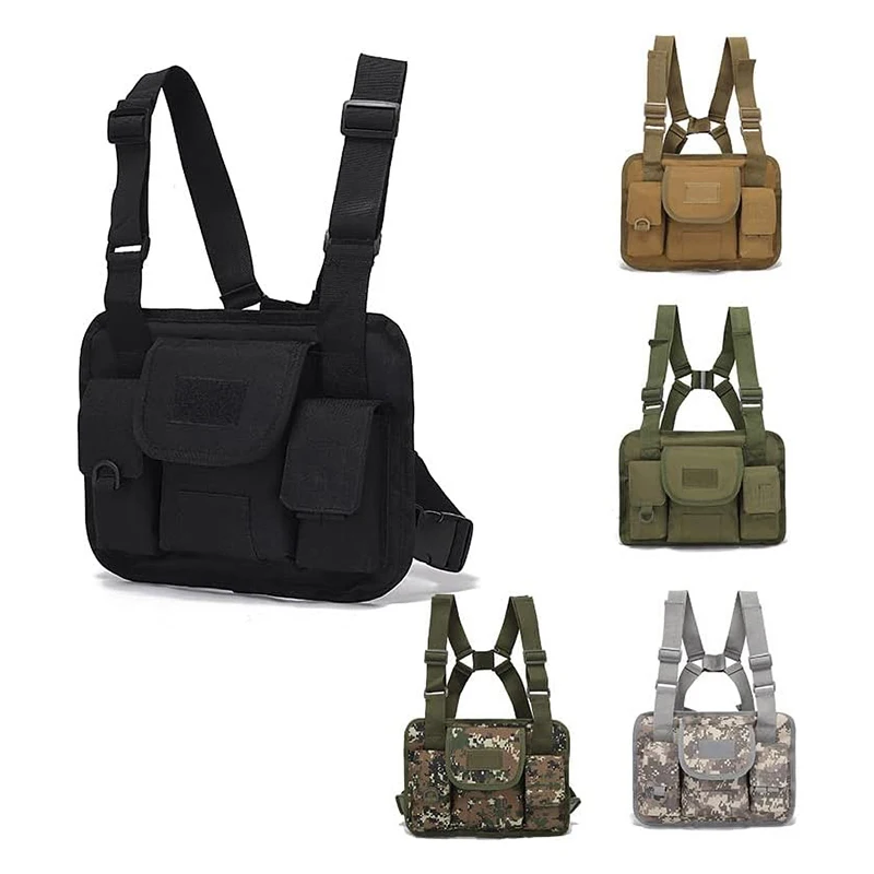 • Outdoor Sports Gear Tactical Chest Rig Multi-Functional Tactical Vest ACU Tactical Chest Rig Pouch with Strap Heavy Duty Tactical Gear Chest Rig Bags for Outdoor Camouflage Tactical Vest Outdoor Tactical Chest Rig
