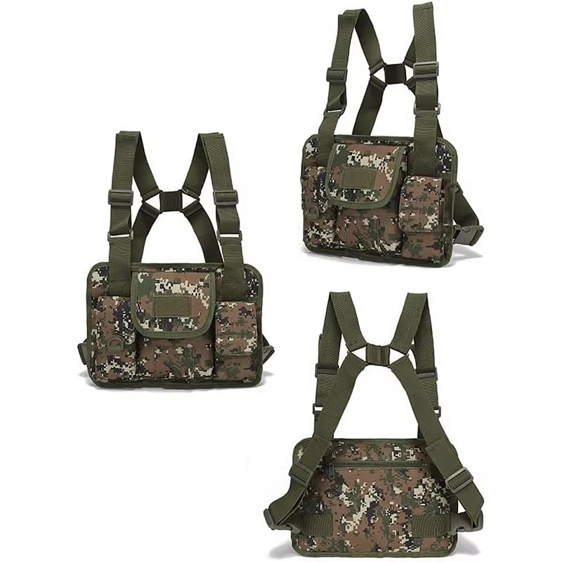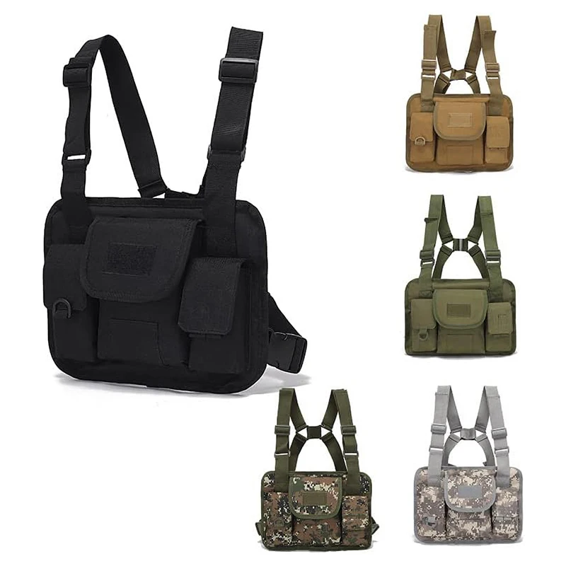• Outdoor Sports Gear Tactical Vest Multi-Functional Tactical Chest Rig Pouch with Strap Tactical Vest Rig Customize Tactical Gear Chest Rig Tactical Style Chest Rig Adjustable Detachable Camouflage Molle Chest Rigs