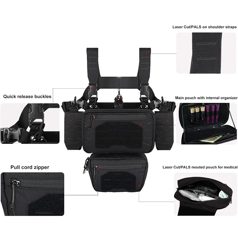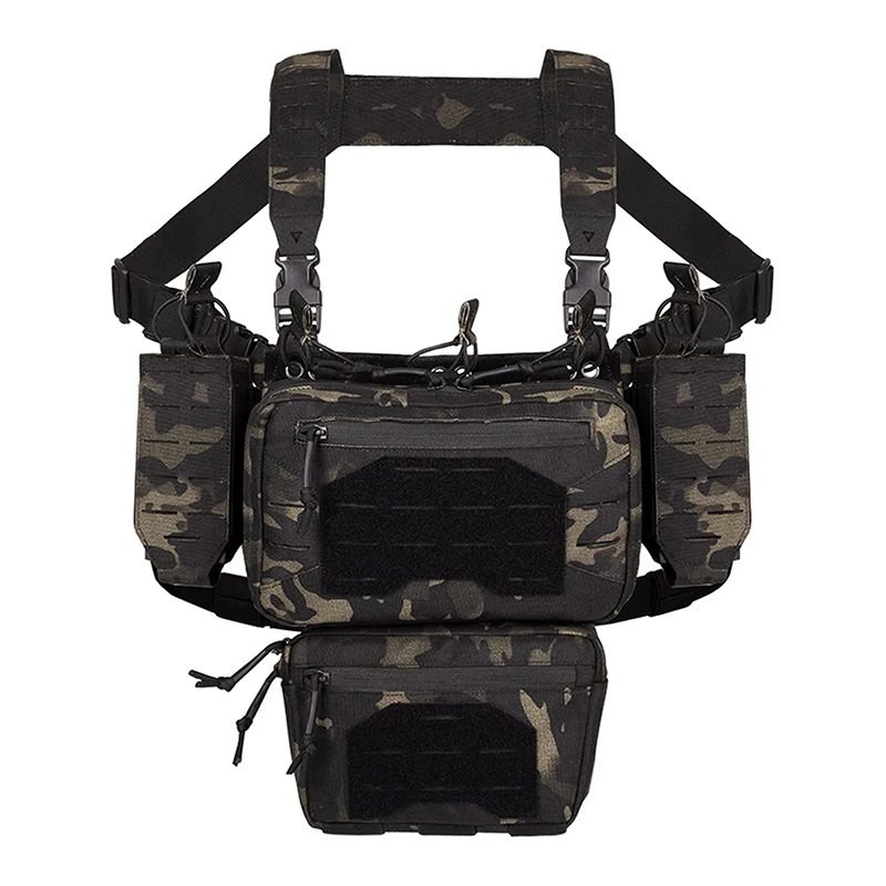 • Outdoor Tactical Chest Mini Rig Multifunctional Adjustable Tactical Vest with Mag Pouches Camo Tactical Vest Rig Tactical Chest Pack Tactical Molle Chest Rig with Multi-Pockets Mag Pouch Good Quality Tactical Rig Vest