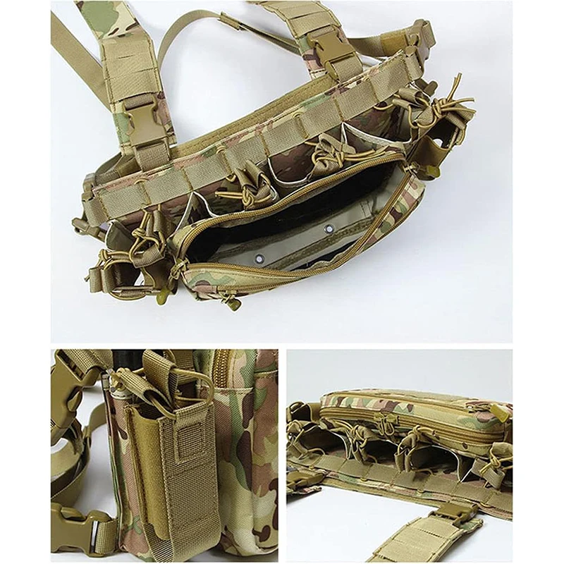 • Outdoor Tactical Chest Rig Vest Camouflage Hunting Tactical Chest Rig With Magazine Pouch Tactical Camouflage Chest Rig Tactical Equipment Chest Rig Tactical MOLLE Micro Vest with Mag Pouch Adjustable Camo Harness Tactical Vest