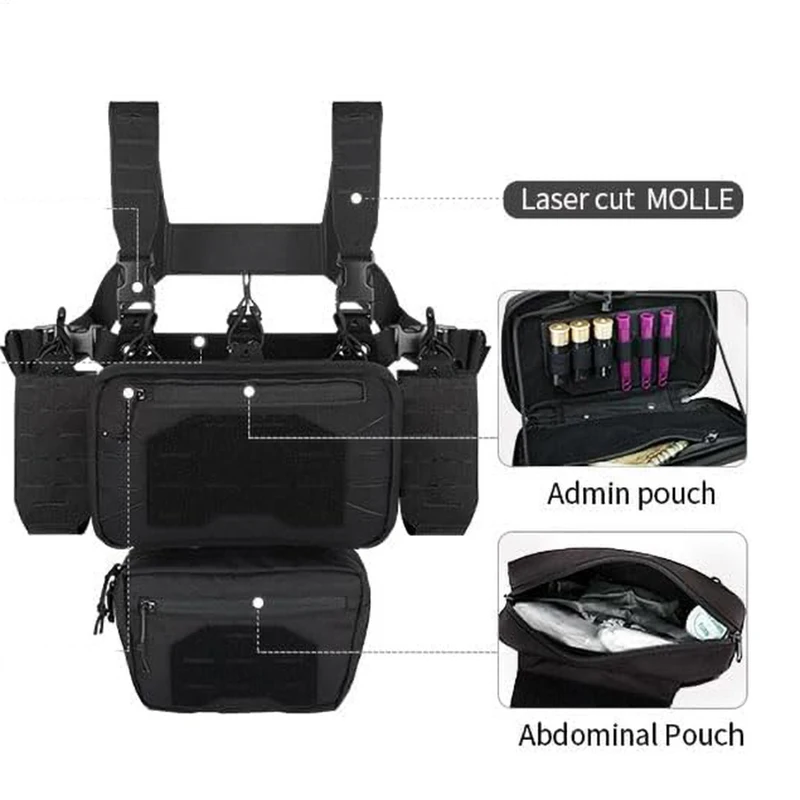• Quick Release Tactical Rig Vest Multifunctional Tactical Vest for Outdoor Multi-Pockets Tactical Chest Mini Rig Hot Sale Tactical Micro Chest Rig with Mag Pouch Outdoor Tactical Vest Good Quality Magazine Pouch Tactical Vest