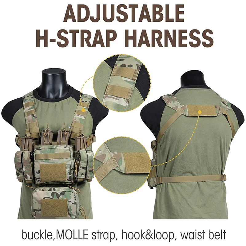 • Tactical Chest Rig Adjustable Detachable Molle Chest Rigs with Mag Pouch Camouflage Tactical Vest Chest Rig Tactical Gear Chest Rig Heavy Duty Tactical Vest MOLLE Chest Rigs Utility Tactical Chest Rig with Dangler Pouch