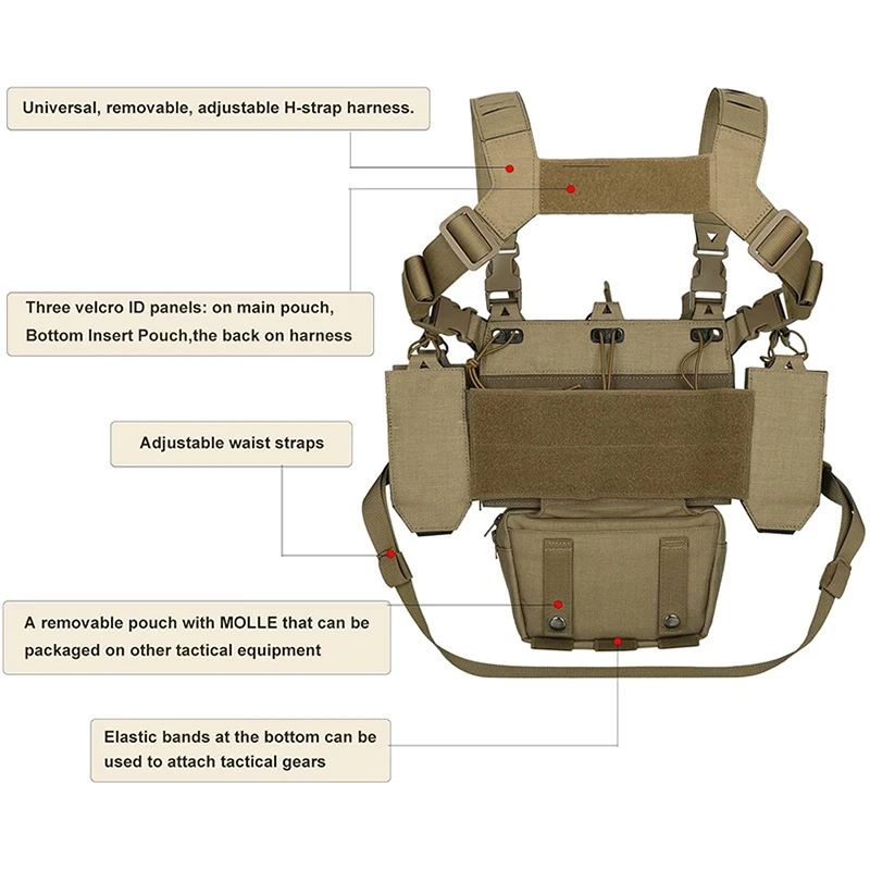 • Tactical Chest Rig Multifunctional Adjustable Tactical Vest with Mag Pouches Outdoor Camouflage Chest Rig Tactical Micro Chest Rig with Magazine Holder Tactics Security Vest Outdoor Tactics Chest Rig