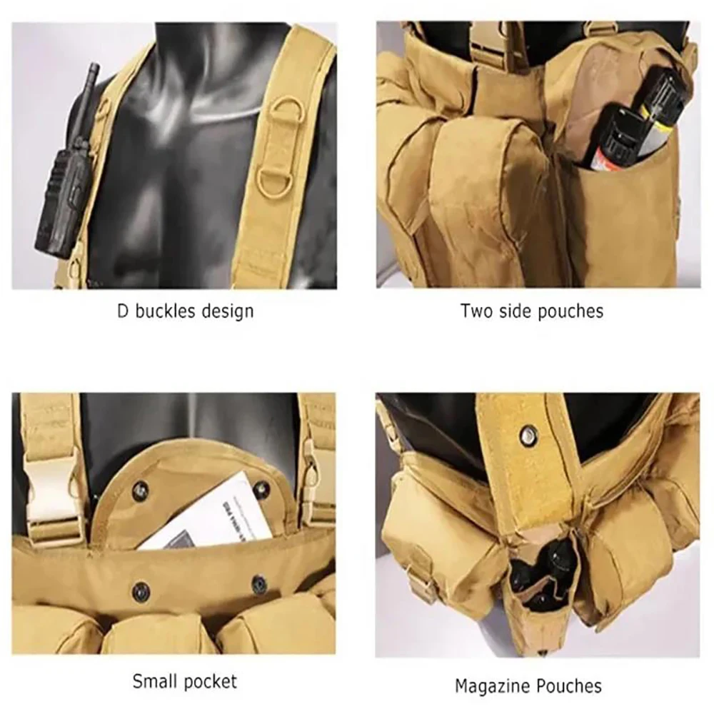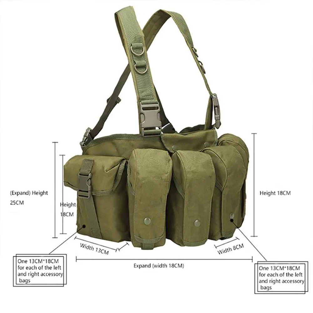 • Tactical Molle Pouch Rig Chest Heavy Duty Tactical Chest Harness Vest Outdoor Protective Hunting Vest Rig Durable Tactical Chest Rig Adjustable Chest Rig Tactical Vest Waterproof Tactical Vest Chest Rig with Belly Pouch